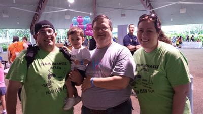 My husband, Alan, and I were fitted with bracelets that identified us as mom and dad. And when I visited Myles for the first time after his birth, Alan and I were told that we had to limit contact with him to not over-stimulate his body. Sitting in NICU Pod 1 and watching our baby in an isolette, we knew that this would be the beginning of our journey. We were in the presence of a miracle, and so we nicknamed him “Miracle Myles.” Later on, Chaplain John came to my room and asked if he could speak about Myles the next day at Miracle Miles, a fundraising event benefiting the NICU. Our son wasn’t even 24 hours old, and he would already be an inspiration to people!